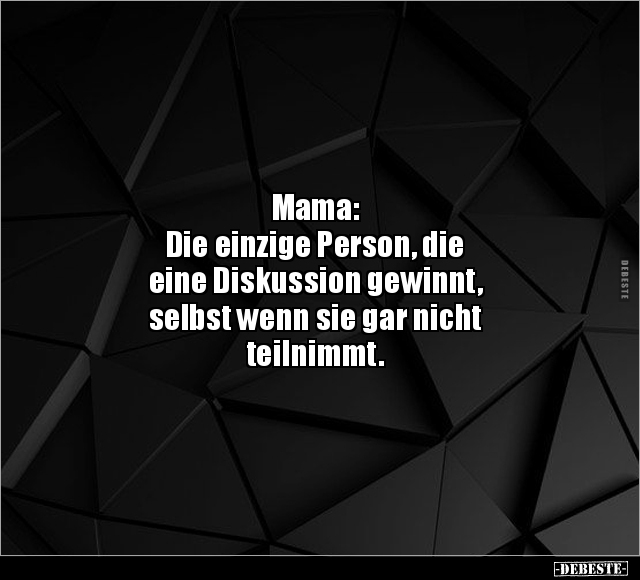 Mama: Die einzige Person, die eine Diskussion gewinnt, selbst wenn sie gar nicht teilnimmt.