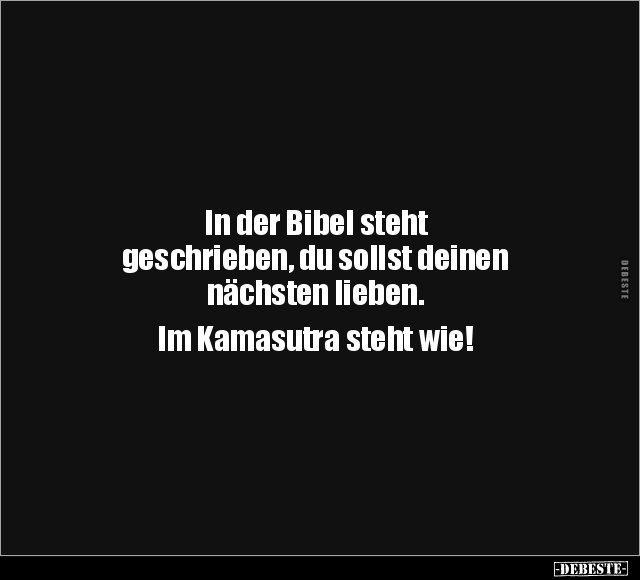 In der Bibel steht geschrieben, du sollst deinen nächsten lieben. Im Kamasutra steht wie!