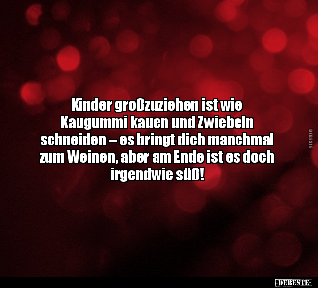 Kinder großzuziehen ist wie Kaugummi kauen und Zwiebeln schneiden – es bringt dich manchmal zum Weinen, aber am Ende ist es doch irgendwie süß!