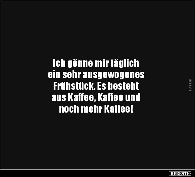 Ich gönne mir täglich ein sehr ausgewogenes Frühstück. Es besteht aus Kaffee, Kaffee und noch mehr Kaffee!
