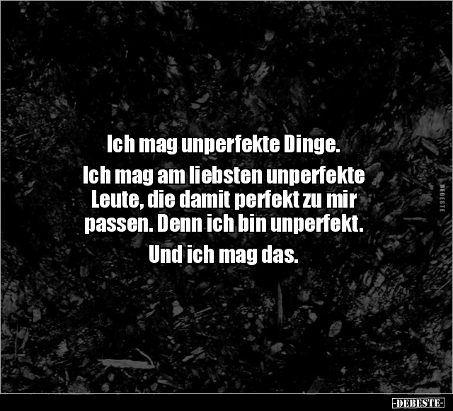 Ich mag unperfekte Dinge. Ich mag am liebsten unperfekte Leute, die damit perfekt zu mir passen. Denn ich bin unperfekt. Und ich mag das.