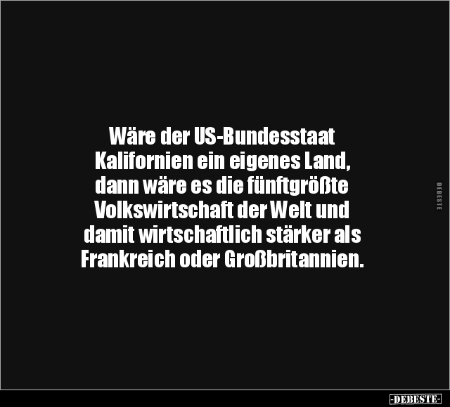 Wäre der US-Bundesstaat Kalifornien ein eigenes Land, dann wäre es die fünftgrößte Volkswirtschaft der Welt und damit wirtschaftlich stärker als Frankreich oder Großbritannien.