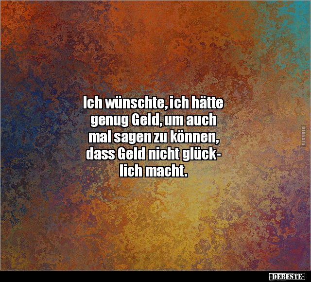 Ich wünschte, ich hätte genug Geld, um auch mal sagen zu können, dass Geld nicht glück- lich macht.