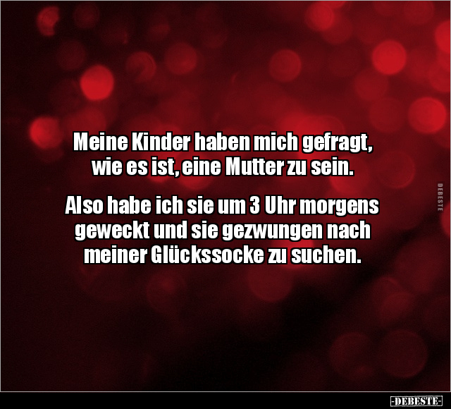 Meine Kinder haben mich gefragt, wie es ist, eine Mutter zu sein. Also habe ich sie um 3 Uhr morgens geweckt und sie gezwungen nach meiner Glückssocke zu suchen.