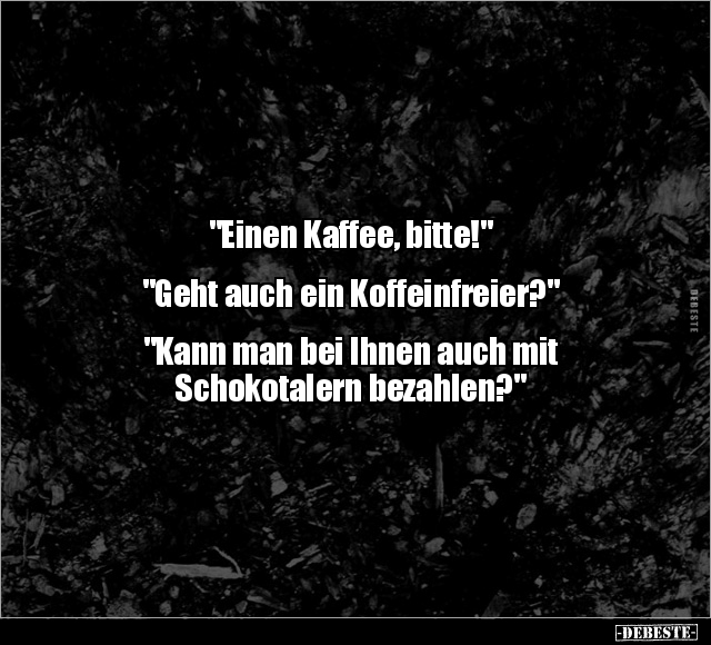 "Einen Kaffee, bitte!" "Geht auch ein Koffeinfreier?" "Kann man bei Ihnen auch mit Schokotalern bezahlen?"