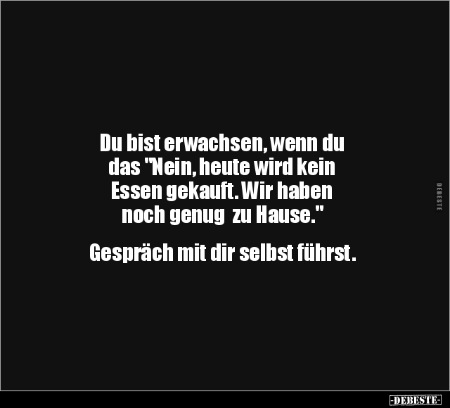 Du bist erwachsen, wenn du das "Nein, heute wird kein Essen gekauft. Wir haben noch genug zu Hause." Gespräch mit dir selbst führst.
