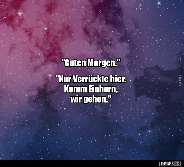 "Guten Morgen." "Nur Verrückte hier. Komm Einhorn, wir gehen."