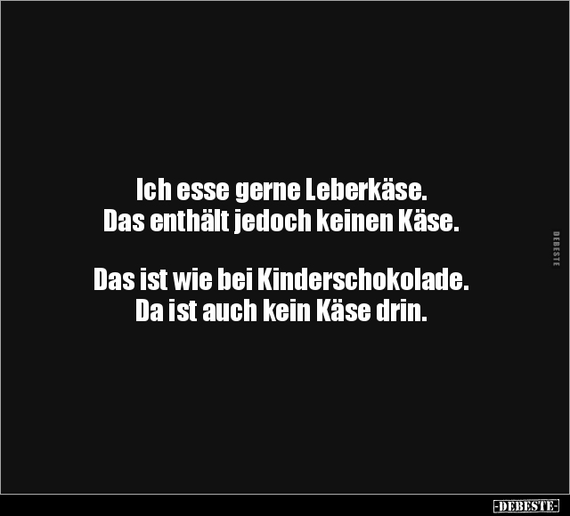Ich esse gerne Leberkäse. Das enthält jedoch keinen Käse. Das ist wie bei Kinderschokolade. Da ist auch kein Käse drin.