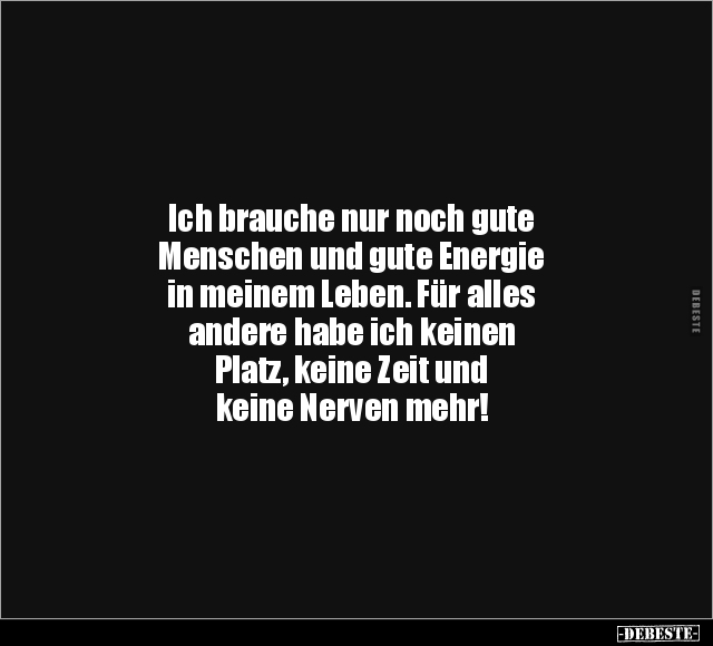 Ich brauche nur noch gute Menschen und gute Energie in meinem Leben. Für alles andere habe ich keinen Platz, keine Zeit und keine Nerven mehr!