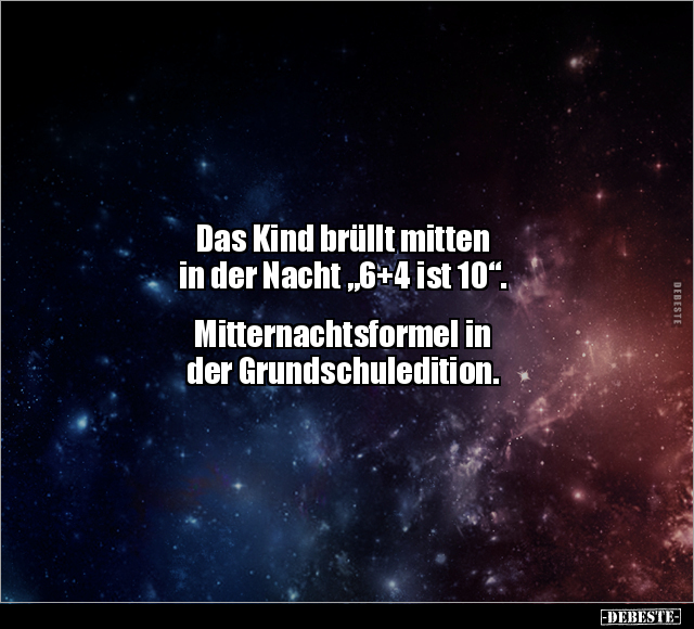 Das Kind brüllt mitten in der Nacht „6+4 ist 10“. Mitternachtsformel in der Grundschuledition.