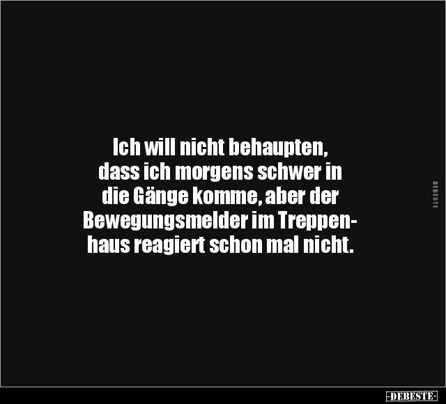 Ich will nicht behaupten, dass ich morgens schwer in die Gänge komme, aber der Bewegungsmelder im Treppen- haus reagiert schon mal nicht.