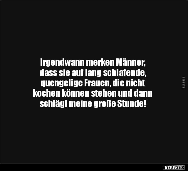 Irgendwann merken Männer, dass sie auf lang schlafende, quengelige Frauen, die nicht kochen können stehen und dann schlägt meine große Stunde!