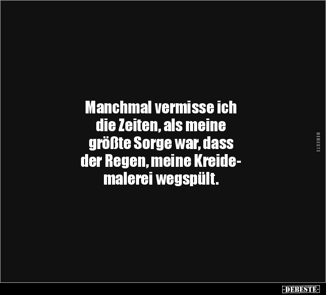 Manchmal vermisse ich die Zeiten, als meine größte Sorge war, dass der Regen, meine Kreide- malerei wegspült.