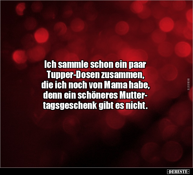 Ich sammle schon ein paar Tupper-Dosen zusammen, die ich noch von Mama habe, denn ein schöneres Mutter- tagsgeschenk gibt es nicht.