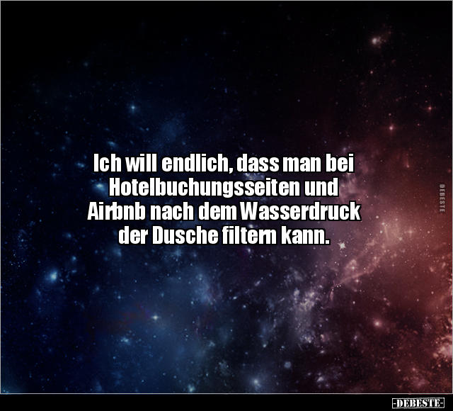 Ich will endlich, dass man bei Hotelbuchungsseiten und Airbnb nach dem Wasserdruck der Dusche filtern kann.