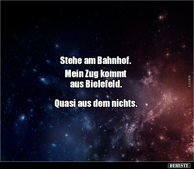 Stehe am Bahnhof. Mein Zug kommt aus Bielefeld. Quasi aus dem nichts.