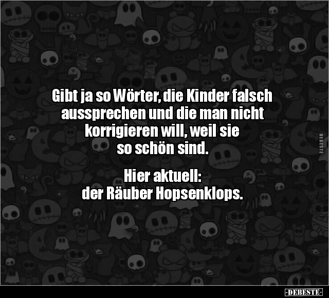 Gibt ja so Wörter, die Kinder falsch aussprechen und die man nicht korrigieren will, weil sie so schön sind. Hier aktuell: der Räuber Hopsenklops.