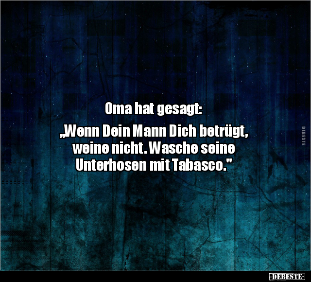 Oma hat gesagt: „Wenn Dein Mann Dich betrügt, weine nicht. Wasche seine Unterhosen mit Tabasco."