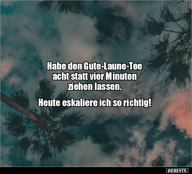 Habe den Gute-Laune-Tee acht statt vier Minuten ziehen lassen. Heute eskaliere ich so richtig!