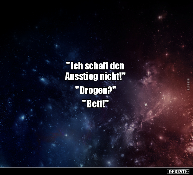 " Ich schaff den Ausstieg nicht!" " Drogen?" " Bett!"