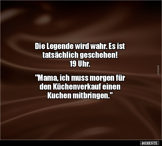 Die Legende wird wahr. Es ist tatsächlich geschehen! 19 Uhr. "Mama, ich muss morgen für den Küchenverkauf einen Kuchen mitbringen."