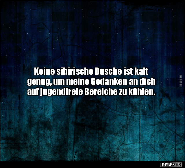Keine sibirische Dusche ist kalt genug, um meine Gedanken an dich auf jugendfreie Bereiche zu kühlen.