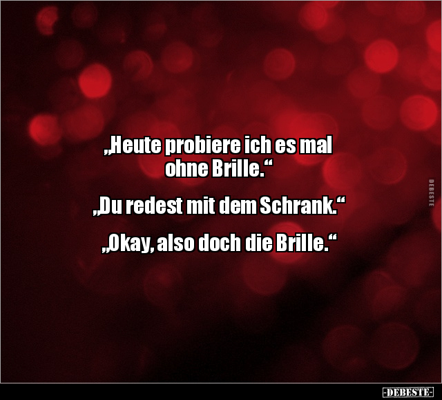 „Heute probiere ich es mal ohne Brille.“ „Du redest mit dem Schrank.“ „Okay, also doch die Brille.“