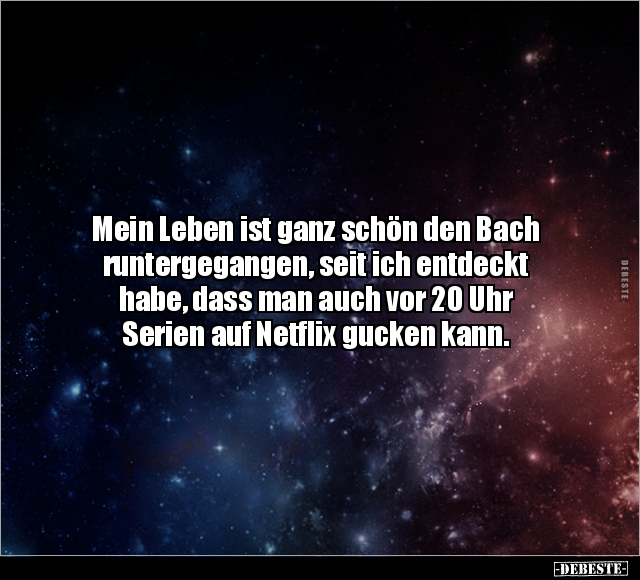 Mein Leben ist ganz schön den Bach runtergegangen, seit ich entdeckt habe, dass man auch vor 20 Uhr Serien auf Netflix gucken kann.