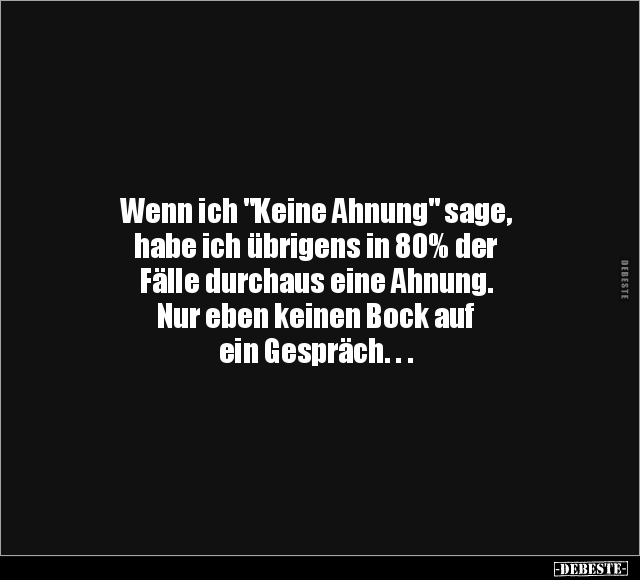 Wenn ich "Keine Ahnung" sage, habe ich übrigens in 80% der Fälle durchaus eine Ahnung. Nur eben keinen Bock auf ein Gespräch. . .