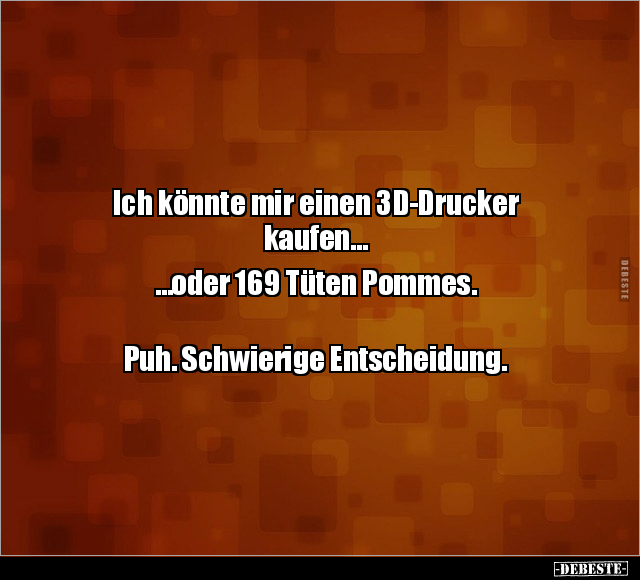 Ich könnte mir einen 3D-Drucker kaufen… …oder 169 Tüten Pommes. Puh. Schwierige Entscheidung.