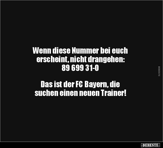 Wenn diese Nummer bei euch erscheint, nicht drangehen: 89 699 31-0 Das ist der FC Bayern, die suchen einen neuen Trainer!