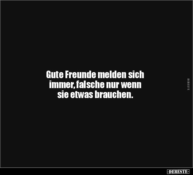 Gute Freunde melden sich immer, falsche nur wenn sie etwas brauchen.