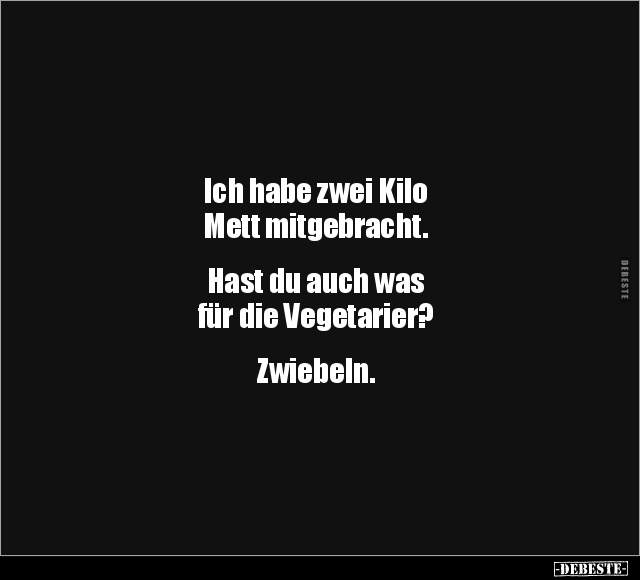 Ich habe zwei Kilo Mett mitgebracht. Hast du auch was für die Vegetarier? Zwiebeln.
