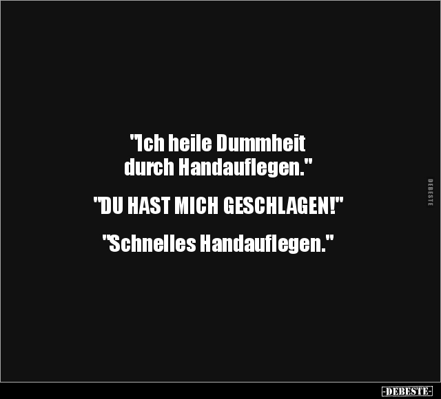 "Ich heile Dummheit durch Handauflegen." "DU HAST MICH GESCHLAGEN!" "Schnelles Handauflegen."