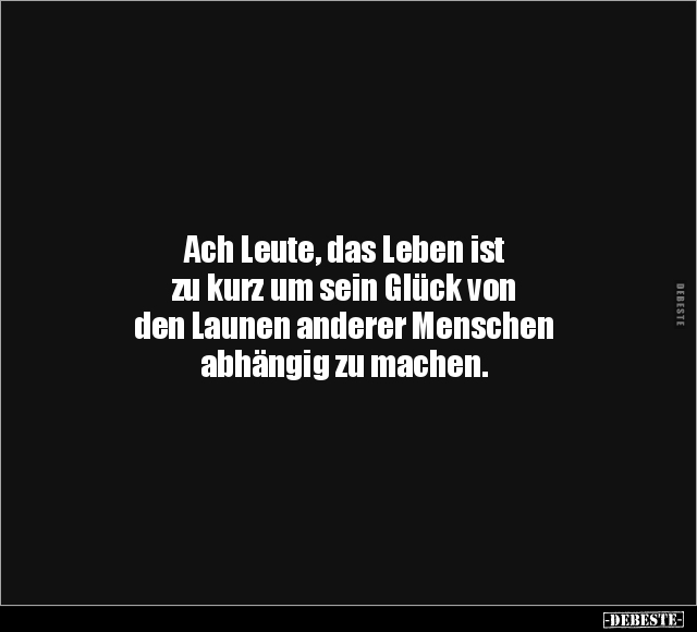 Ach Leute, das Leben ist zu kurz um sein Glück von den Launen anderer Menschen abhängig zu machen.