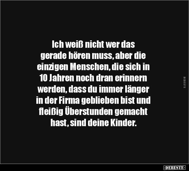Ich weiß nicht wer das gerade hören muss, aber die einzigen Menschen, die sich in 10 Jahren noch dran erinnern werden, dass du immer länger in der Firma geblieben bist und fleißig Überstunden gemacht hast, sind deine Kinder.