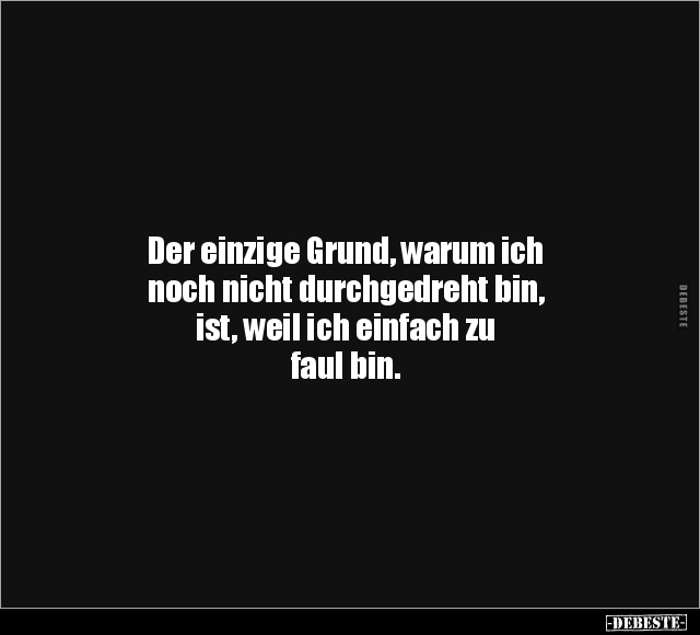 Der einzige Grund, warum ich noch nicht durchgedreht bin, ist, weil ich einfach zu faul bin.