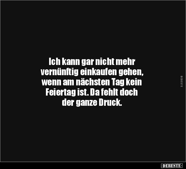 Ich kann gar nicht mehr vernünftig einkaufen gehen, wenn am nächsten Tag kein Feiertag ist. Da fehlt doch der ganze Druck.