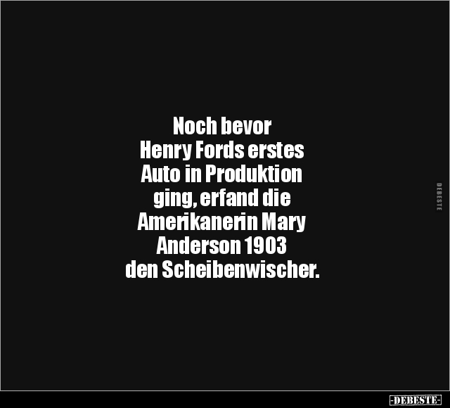 Noch bevor Henry Fords erstes Auto in Produktion ging, erfand die Amerikanerin Mary Anderson 1903 den Scheibenwischer.