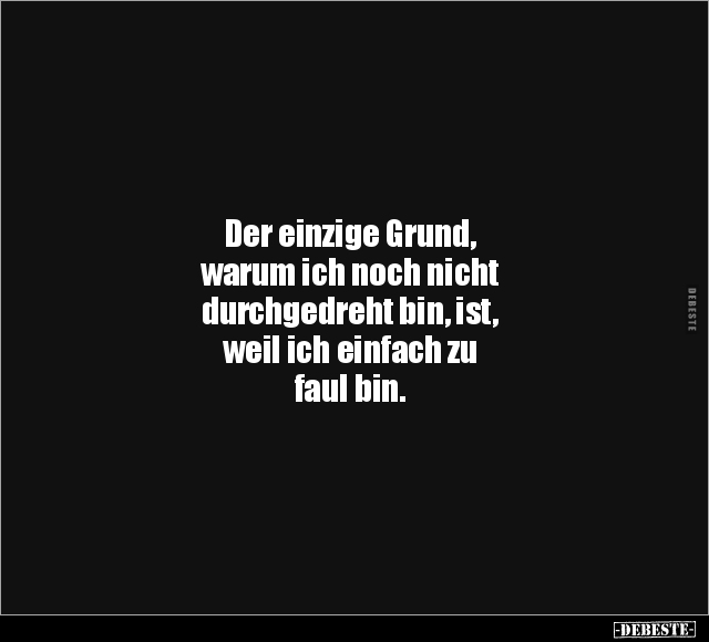 Der einzige Grund, warum ich noch nicht durchgedreht bin, ist, weil ich einfach zu faul bin.