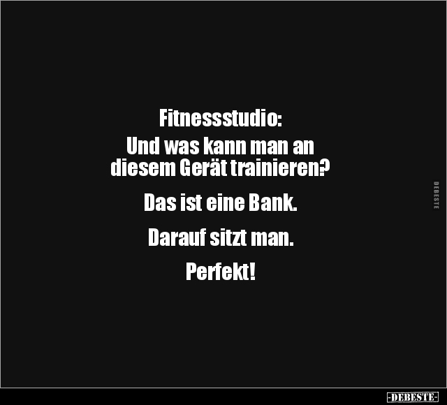 Fitnessstudio: Und was kann man an diesem Gerät trainieren? Das ist eine Bank. Darauf sitzt man. Perfekt!