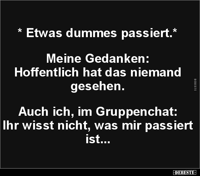 * Etwas dummes passiert.* Meine Gedanken: Hoffentlich hat das niemand gesehen. Auch ich, im Gruppenchat: Ihr wisst nicht, was mir passiert ist...