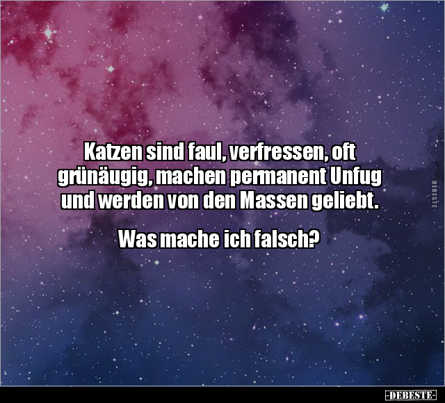 Katzen sind faul, verfressen, oft grünäugig, machen permanent Unfug und werden von den Massen geliebt. Was mache ich falsch?