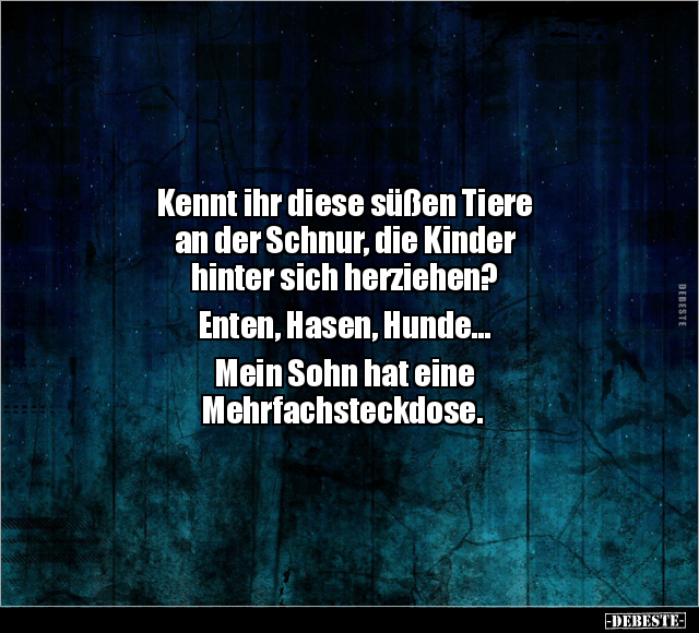 Kennt ihr diese süßen Tiere an der Schnur, die Kinder hinter sich herziehen? Enten, Hasen, Hunde... Mein Sohn hat eine Mehrfachsteckdose.