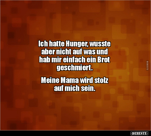 Ich hatte Hunger, wusste aber nicht auf was und hab mir einfach ein Brot geschmiert. Meine Mama wird stolz auf mich sein.