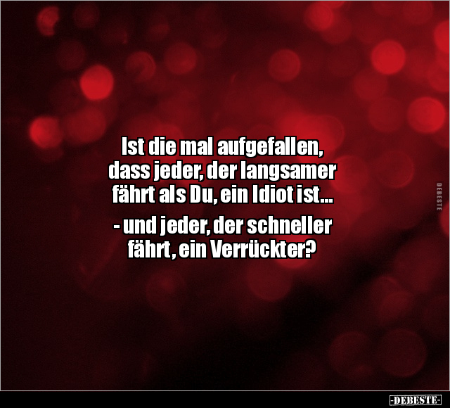 Ist die mal aufgefallen, dass jeder, der langsamer fährt als Du, ein Idiot ist... - und jeder, der schneller fährt, ein Verrückter?