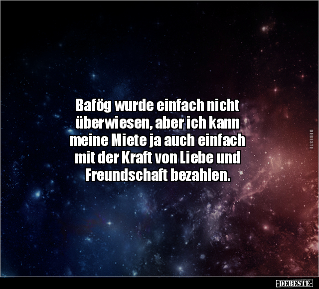 Bafög wurde einfach nicht überwiesen, aber ich kann meine Miete ja auch einfach mit der Kraft von Liebe und Freundschaft bezahlen.