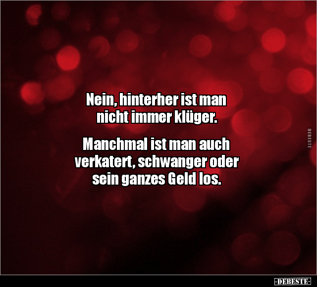 Nein, hinterher ist man nicht immer klüger. Manchmal ist man auch verkatert, schwanger oder sein ganzes Geld los.