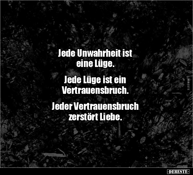 Jede Unwahrheit ist eine Lüge. Jede Lüge ist ein Vertrauensbruch. Jeder Vertrauensbruch zerstört Liebe.