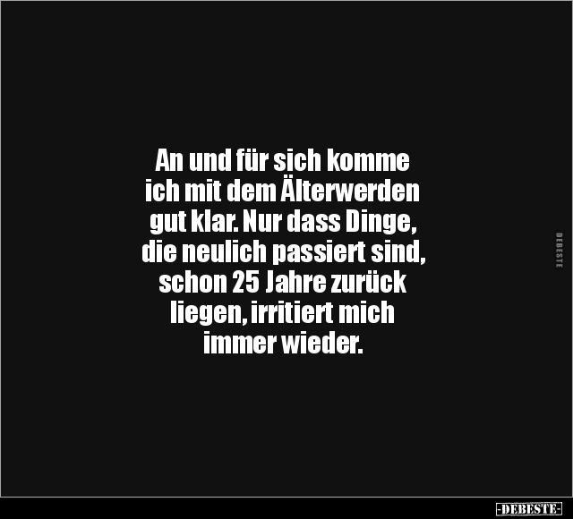An und für sich komme ich mit dem Älterwerden gut klar. Nur dass Dinge, die neulich passiert sind, schon 25 Jahre zurück liegen, irritiert mich immer wieder.